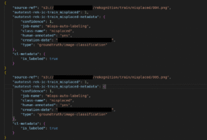 For image classification, the ground truth is defined at the image level. It is automatically generated from the folder structure, following the AWS SageMaker Ground Truth specification. Below is an example shows image classification ground truth of two images: