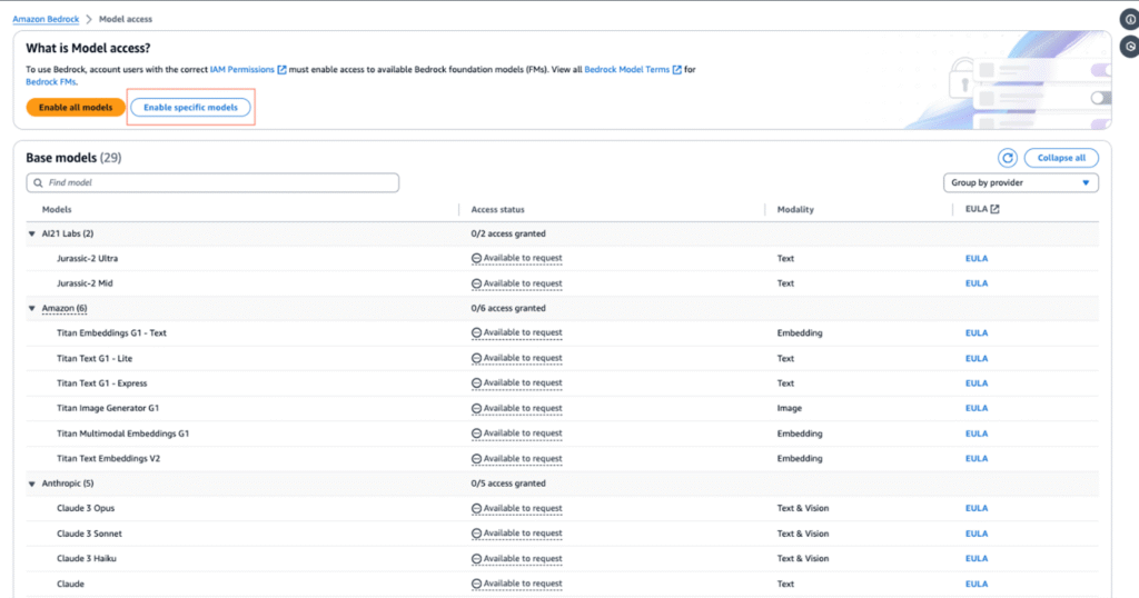 Next, let’s walk through how to set up access to these models in Amazon Bedrock.