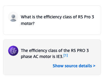 Your test interface should now resemble the image below. Use the message box at the bottom of the panel to interact with the knowledge base.Try asking a few questions about the electric motors you’ve uploaded to see the knowledge base in action. For example, you could ask: