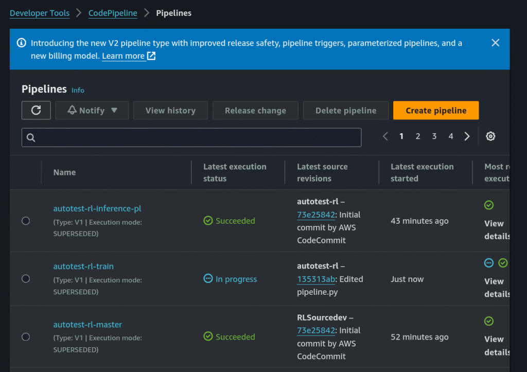 • Folder-based triggers are configured so that changes under the train or inference folder trigger the corresponding pipeline.