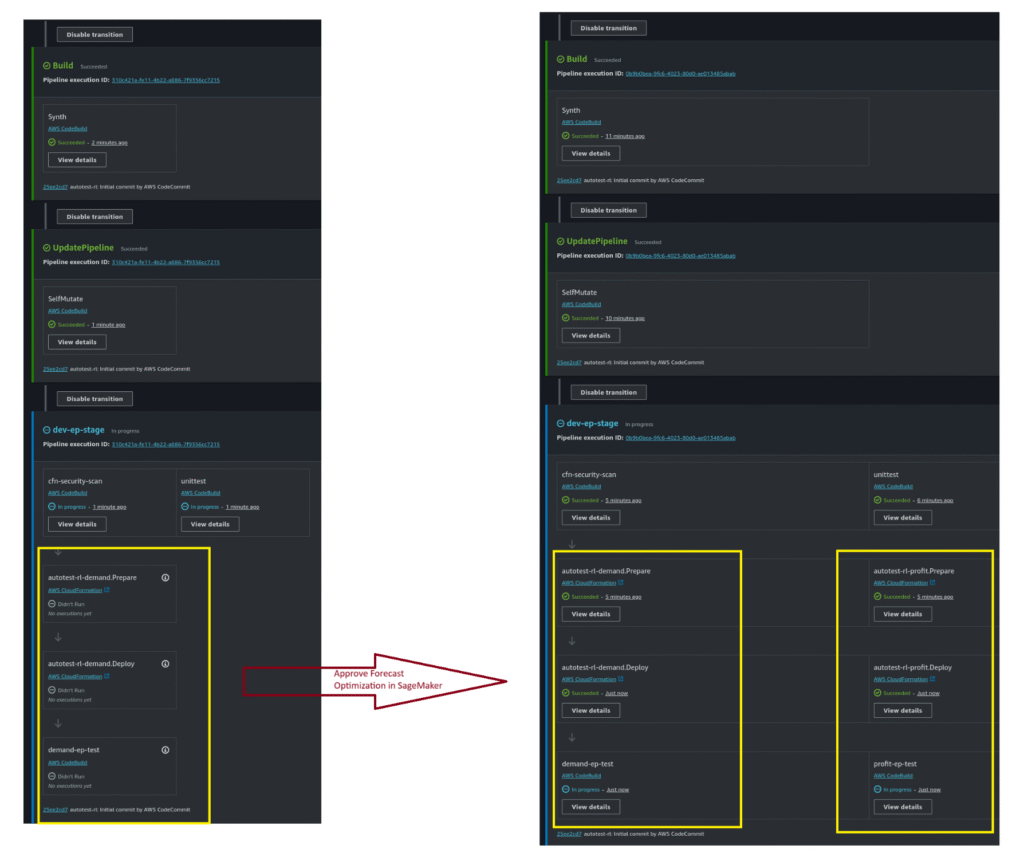 • Both Models Approved (right) – If both the demand and profit optimization models are approved, the pipeline dynamically expands to include two branches.